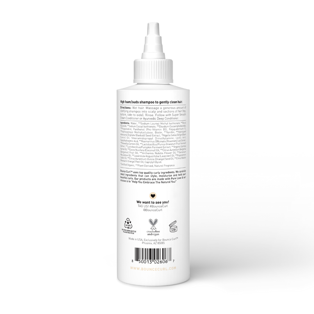 De Bounce Curl Gentle Clarifying Shampoo is een milde, verfrissende reiniger die je haar grondig schoonmaakt zonder de natuurlijke oliën te strippen. Deze shampoo verwijdert productopbouw, overtollig talg en vuil, terwijl het haar gehydrateerd en in balans blijft. De formule is verrijkt met plantaardige ingrediënten en enzymen die de hoofdhuid zuiveren én verzorgen. Ideaal als wekelijkse reset of als eerste stap in je wasroutine.