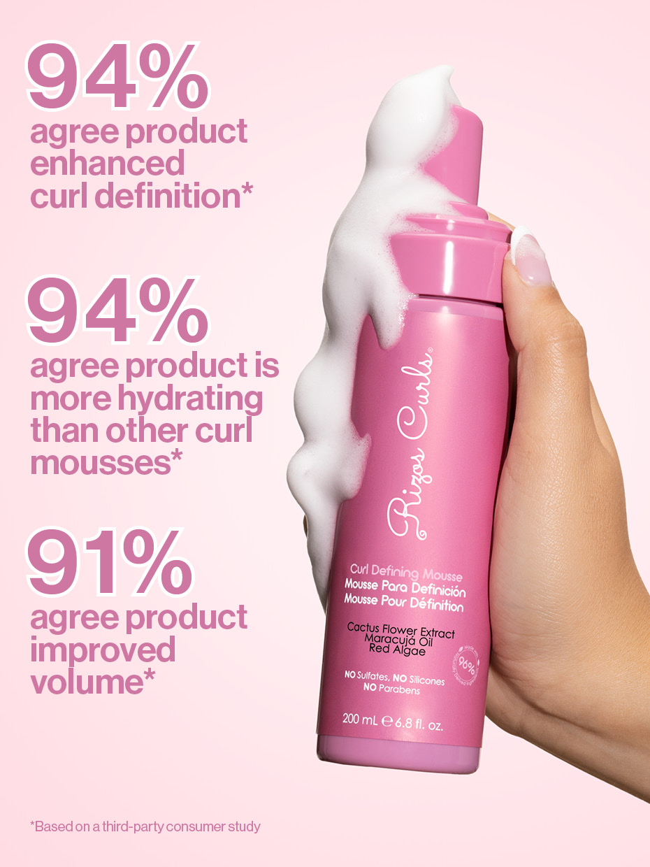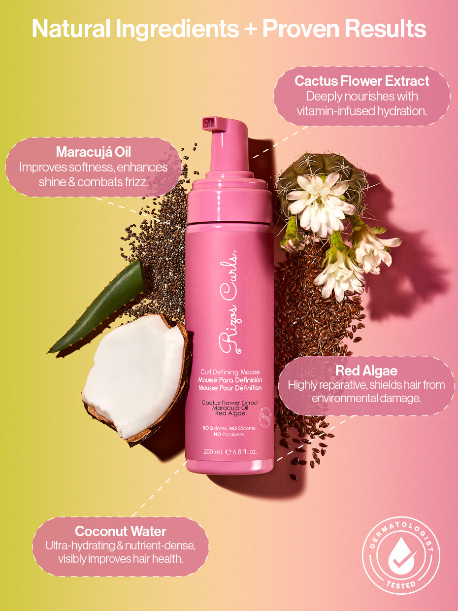 De Rizos Curls Curl Defining Mousse is een lichtgewicht stylingmousse die je krullen definieert, volume geeft en pluis vermindert zonder ze crunchy of stijf te maken. Deze foam-formule is perfect voor wie op zoek is naar flexibele hold met een natuurlijk gevoel. De mousse geeft je krullen een langdurige boost en zorgt voor veerkrachtige, luchtige krullen met een gezonde glans, zonder build-up of vettig gevoel.